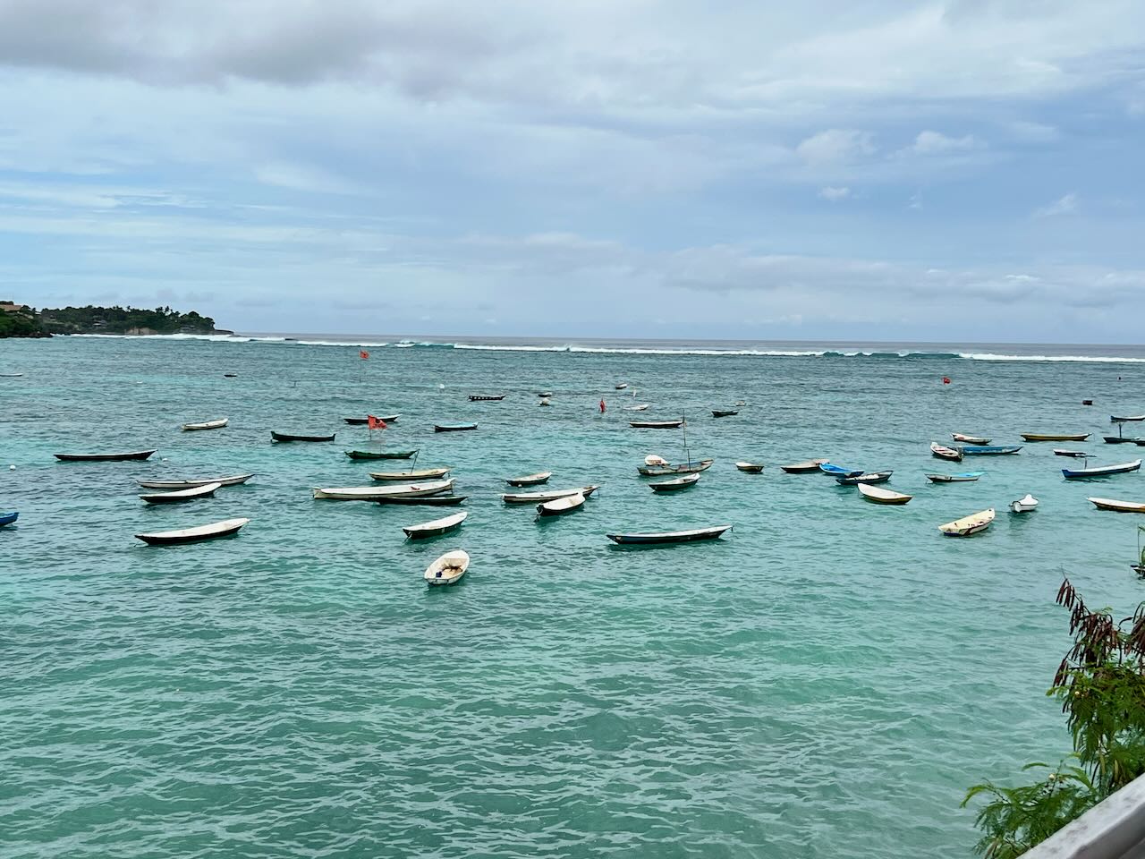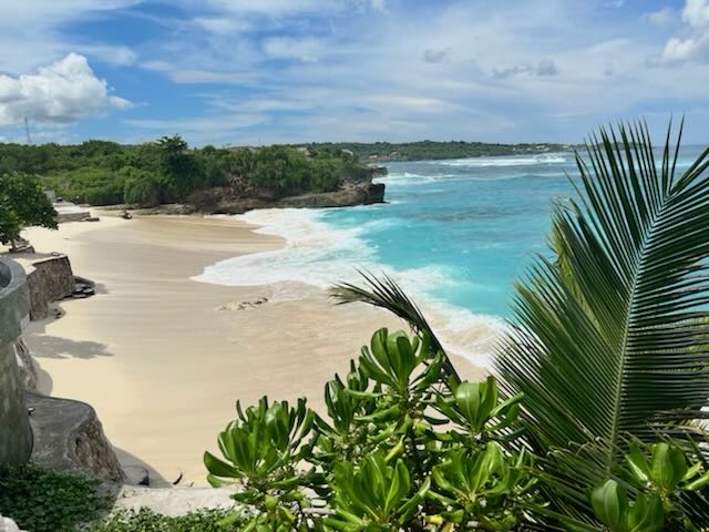 After landing in Bali, we made a beeline for Sanur, a chill spot on the island’s east side. Our plan was to catch an early speedboat to Nusa Lembongan, a tiny island off the coast of Bali, the next morning. The boat zipped across the Indian Ocean for about an hour before we hit Nusa Lembongan. Within 20 minutes of that (after our luggage was carried off the dockless speedboat and balanced on the heads of men wading through the waves), we were lounging by an infinity pool, gazing at the most stunning turquoise water we’d ever seen. Seriously, this was the kind of view that makes you want to pack your bags and ditch reality forever.