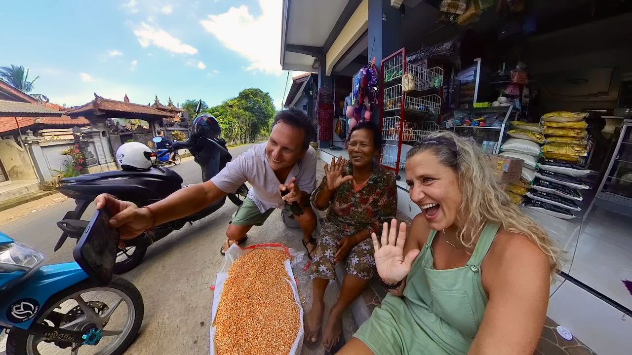 We spent the next three days exploring this island paradise. One day, we were cruising along on our bikes, wind in our hair, when we spotted a lady walking down the street with something that looked like a shiv in her hand. 😨 To be fair, if we saw that in most other places in the world, we’d be pretty freaked out. So, we start nervously filming her from our scooter, just in case something goes down. It took us a while to shake off that feeling… but then a few days later, we noticed that this happens everywhere in Bali! People are always walking around with machetes and other sharp tools. 😂 We laughed so hard at ourselves for being so foolish! This is exactly why travel is so important – it teaches you about the world, challenges your perceptions, and ultimately changes your worldview. We quickly realized that Bali and the neighboring islands are some of the safest and happiest places on earth!