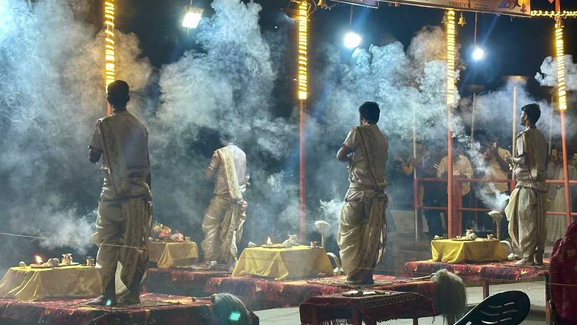 Evenings were reserved for the Aarti, a mesmerizing ritual of light and devotion that transports everyone into a shared space of love and peace. Watching the flames dance on the Ganges, the music washing over us, was truly a once-in-a-lifetime experience.